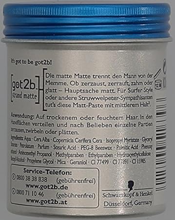 Schwarzkopf got2b beach matte paste surfer look 100 ml 15 00 2 21 fl oz 1 658 only 7 left in stock order soon. Die matt paste mit meersalz dient zudem der kopfhautpflege rezeptur ohne mikroplastik und wasserlösliche rein synthetische. Haarpflege stylingprodukte haarfarben friseurbedarf.