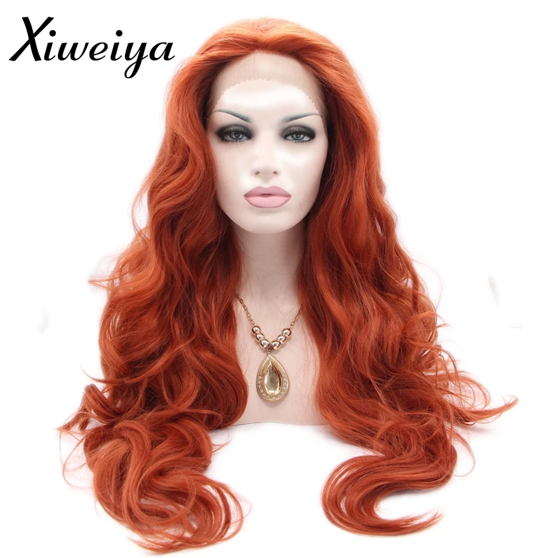 xiweiya warme bestandig synthetische kupfer red lace front perucke weiss frauen langen roten haar perucke korper welle glueless drag queen weiche