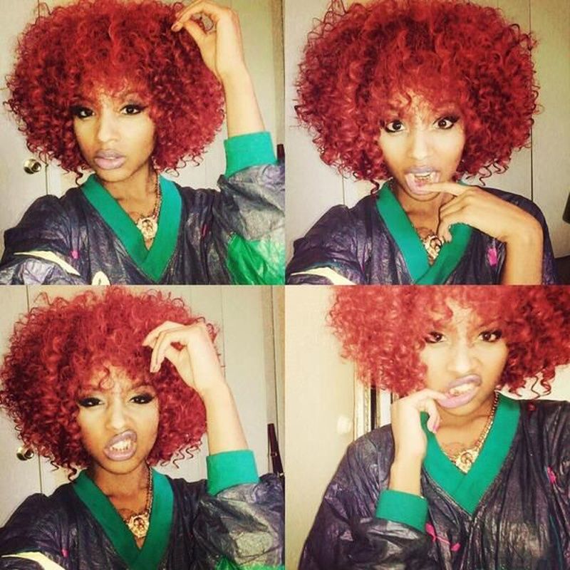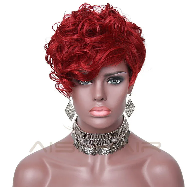 royalvirgin art und weise rihanna peluca reizend volle kappen haar perucken kurze verworrene lockige rote perucken synthetische haar perucke fur