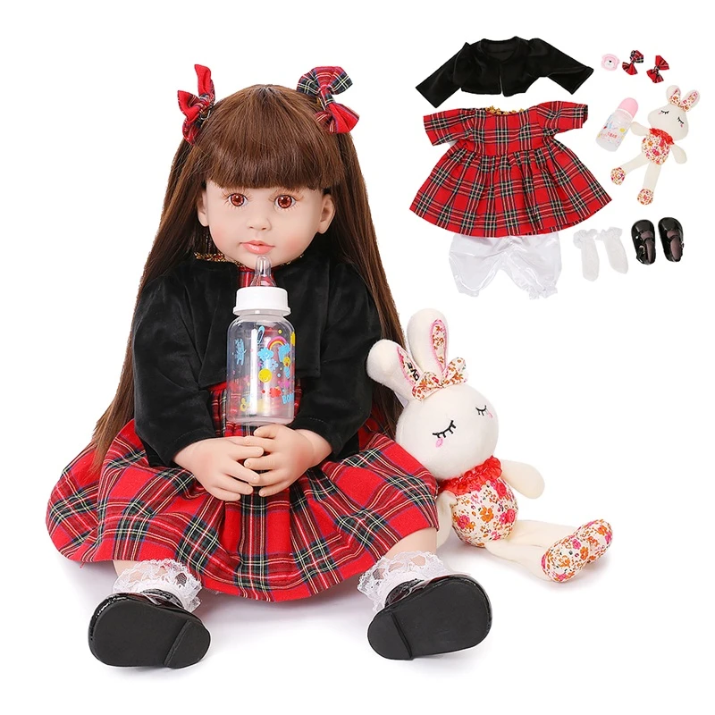 neue elegante reborn baby puppen 60cm weichen vinyl rot tuch silikon baby prinzessin mit langen braunen haar fur kinder weihnachten geschenke