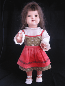 puppe mit langen braunen haaren