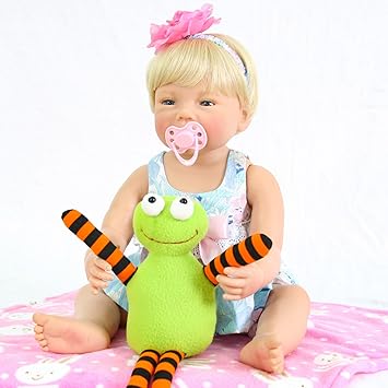 decdeal reborn dolls 24 zoll realistische baby silikon vinyl baumwolle koerper kleinkind puppen lebensechte gewichtete baby mit blonden haaren