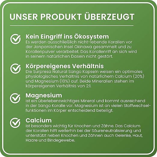 Nur zwei firmen ist es unter strengsten kontrollen und auflagen erlaubt die sango koralle vom meeresboden zu gewinnen. Dabei ist sie 100 natürlich basisch und gut verträglich. Die sango meeres koralle liefert eine fülle an mineralstoffen und spurenelementen so dass bereits eine kleine tagesdosis von 2 4 gramm sango meeres korallen pulver mit 576 mg calcium und 266 mg magnesium versorgt. Das entspricht bereits mehr als der hälfte des täglichen calciumbedarfs 1000 mg und gleichzeitig fast dem kompletten täglichen magnesiumbedarf 300 400 mg so dass das pulver eine ideale.