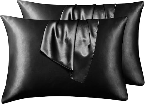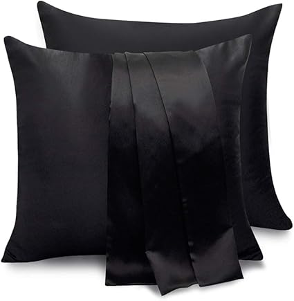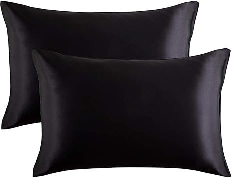 bedsure satin kissenbezug schwarz 50x75 doppelpack seidig kopfkissenbezug 50 x 75 cm haar und hautpflege kissenbezuge kissenhulle in 2er set silky