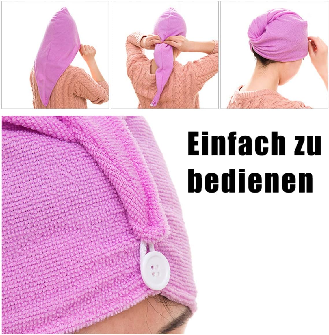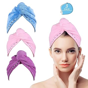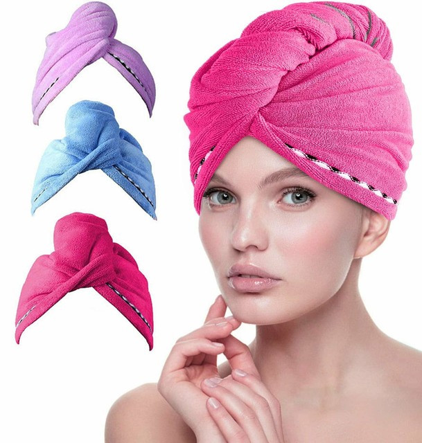 iliebe haarturban 3 stuckturban handtuch mit knopf turban haartrockentuch schnelltrocknend mikrofaser handtuch fur kopf und lange haare