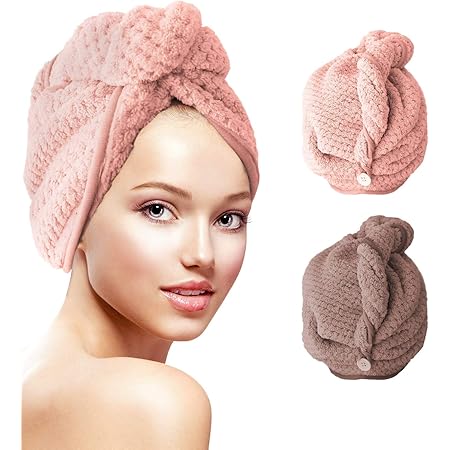 haarturban 2 pcs microfaser turban handtuch schnelltrocknend saugfahig haar handtuch kopfhandtuch mit knopf haarhandtuch fur alle haartypen braun