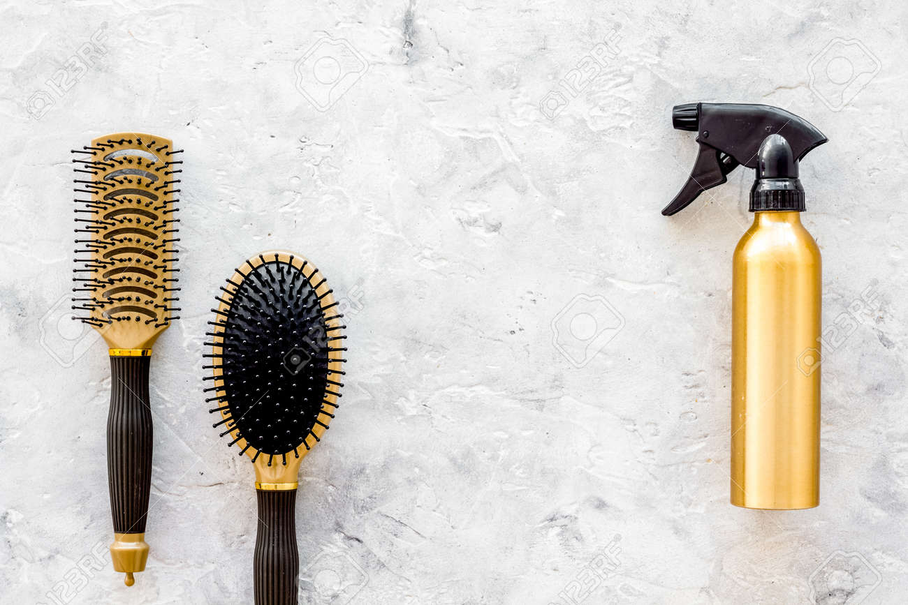 friseurbedarf schere fon haare kammen und wasser spruhen flasche gold gefarbt vektorillustration stock vektor art und mehr bilder von ausrustung und gerate istock
