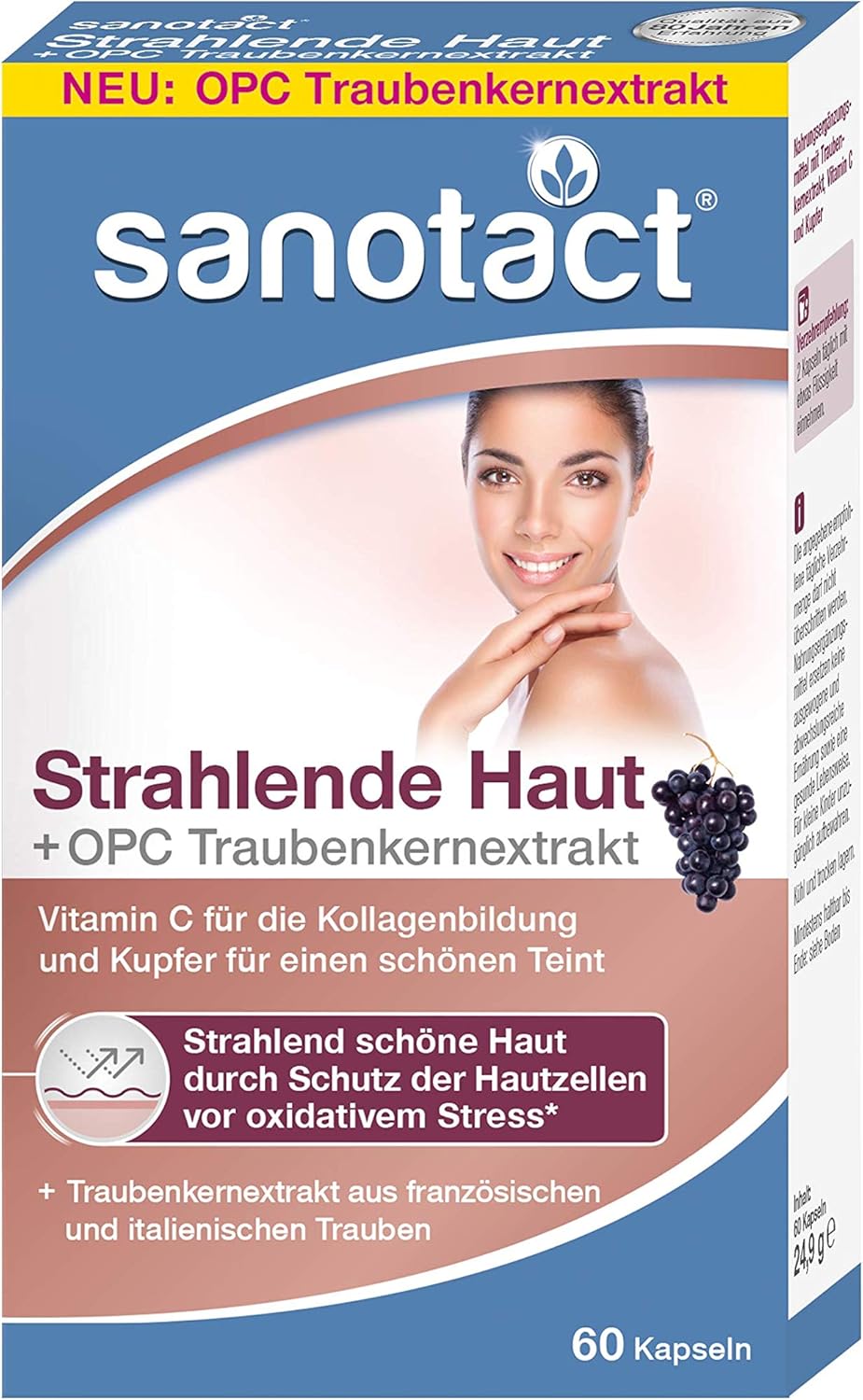 sanotact strahlende haut kapseln mit opc traubenkernextrakt aus franzosischen und italienischen trauben vitamin c und kupfer fur einen schonen