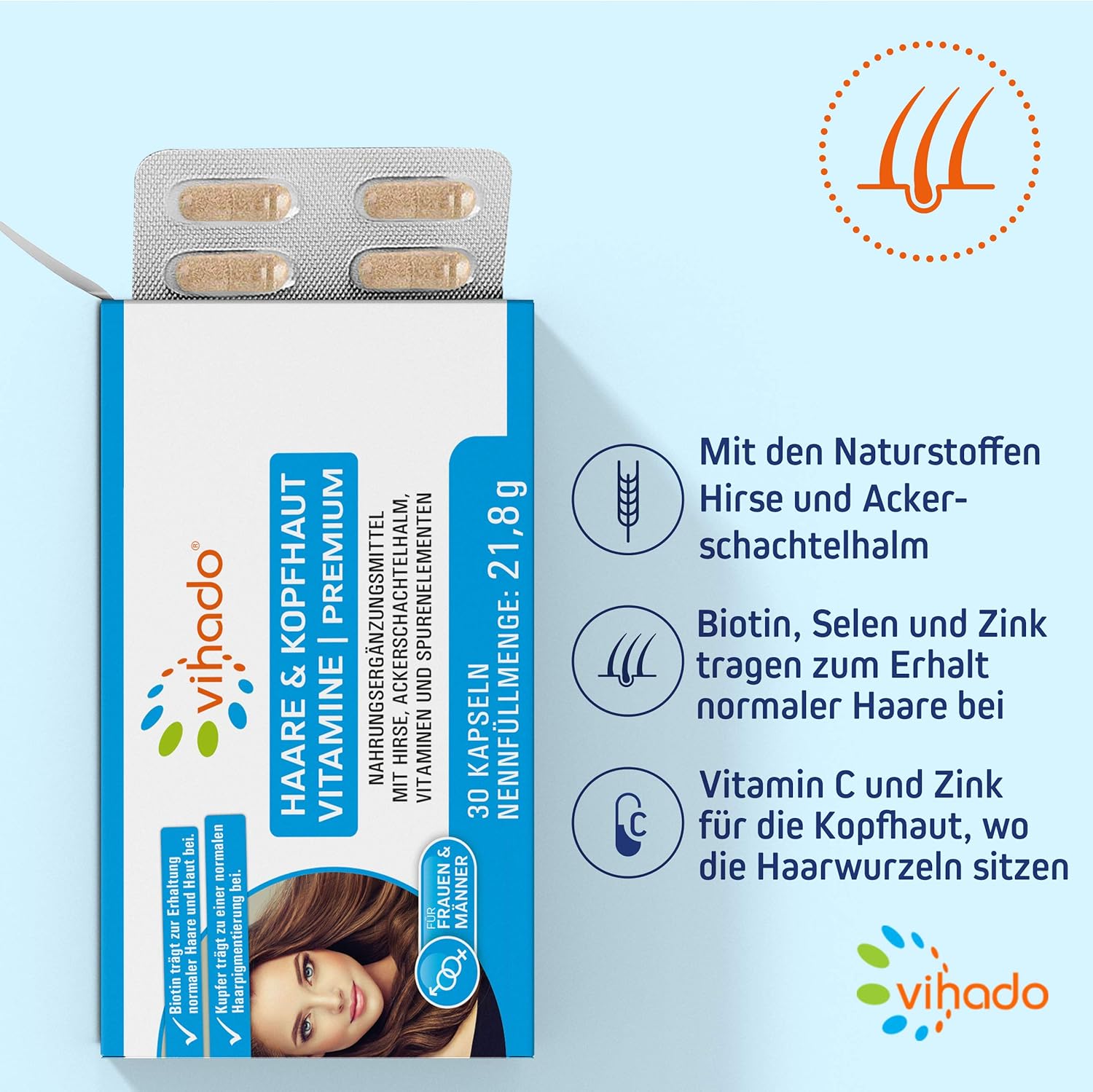 Vitamin b2 sorgt für schöne haare und gesunde kopfhaut und findet sich in lachs käse oder mandeln. Das fettlösliche vitamin unterstützt außerdem das haarwachstum und wirkt sich positiv auf die fettsynthese in den follikeln strukturen die die haarwurzel umgeben aus. Das vitamin b7 wird auch biotin genannt und gilt als absolutes schönheitsvitamin und unterstützt deine haare im kampf gegen den haarausfall. Biotin zählt hierbei zu den bekanntesten und besten vitamin b komponenten für den haarwuchs.
