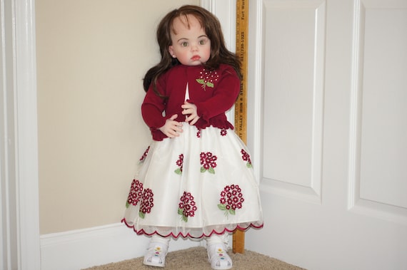 bio stoff puppe 12 zoll weiche puppe waldorf lange haare braune augen polka dots streifen rot grau grau